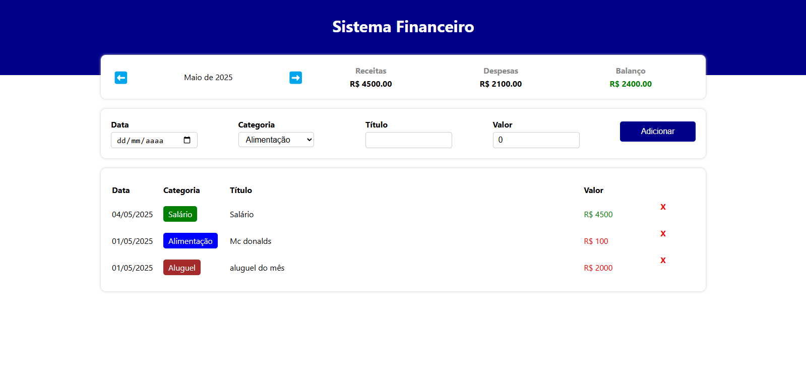 Sistema para controle financeiro pessoal com divisão por períodos. Feito para fins de aprendizagem.