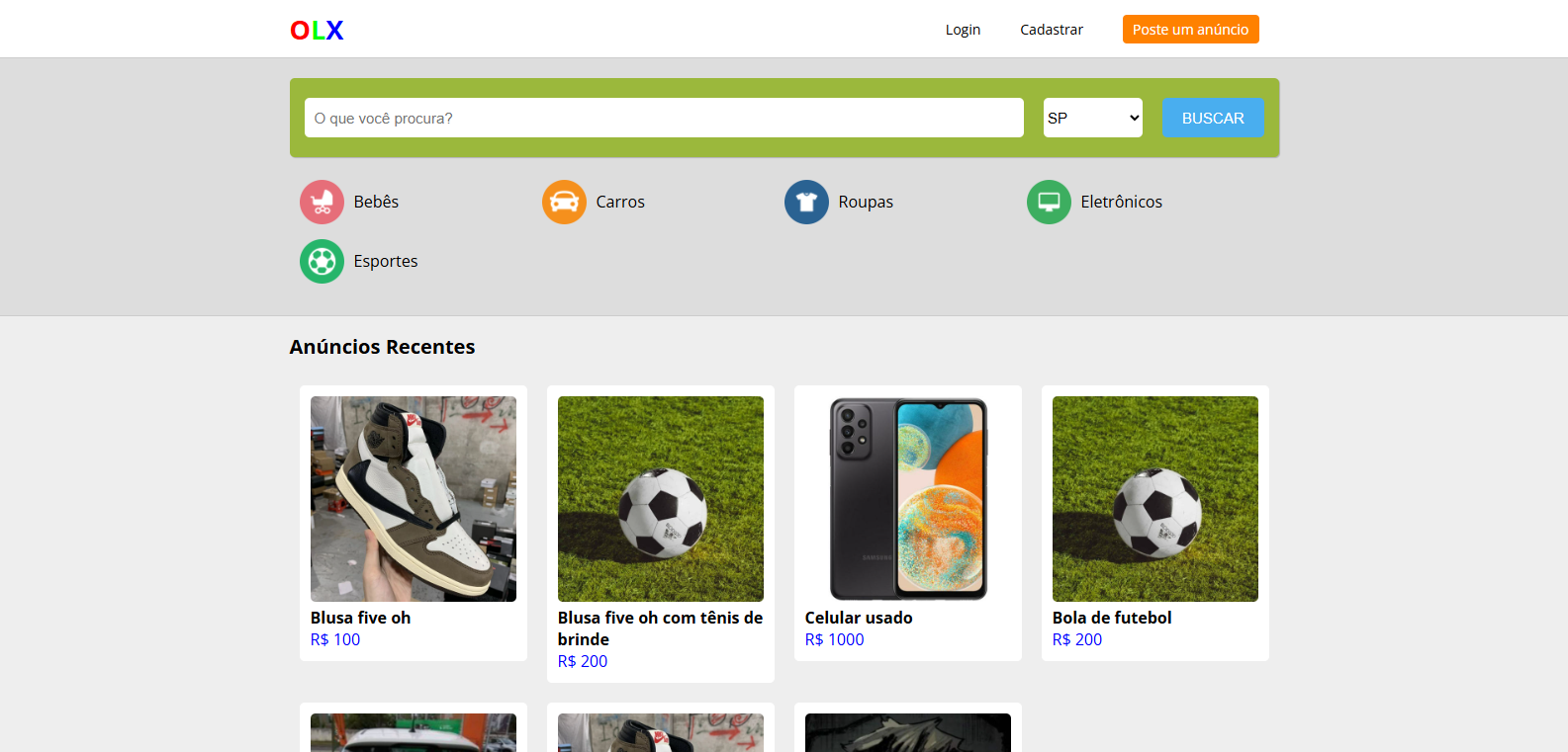 Clone do OLX com algumas funcionalidade do site original. Feito para fins de aprendizagem.